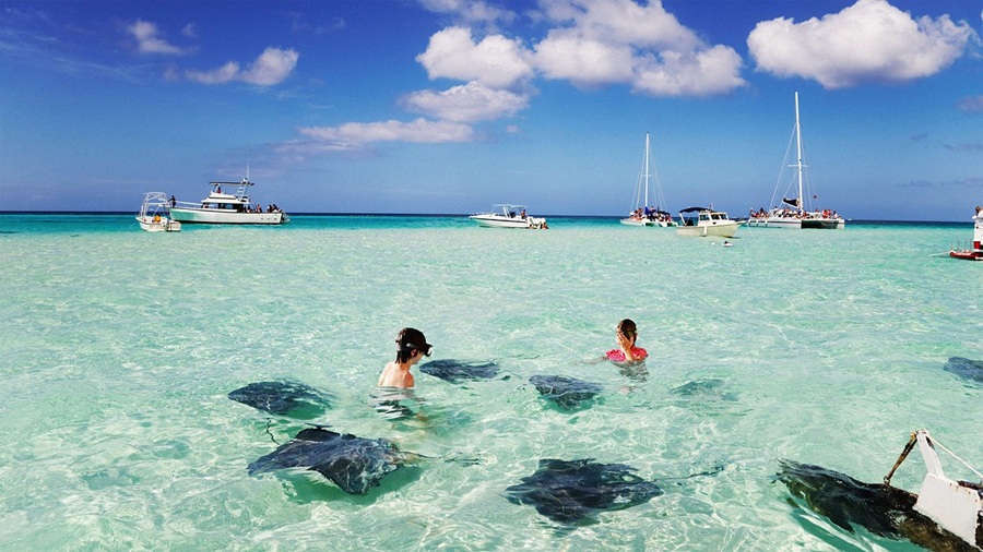 Gran Caimán combina una de las playas más famosas del mundo, Seven Mile Beach, con una experiencia única: nadar con rayas en Stingray City en aguas que apenas llegan a la cintura.