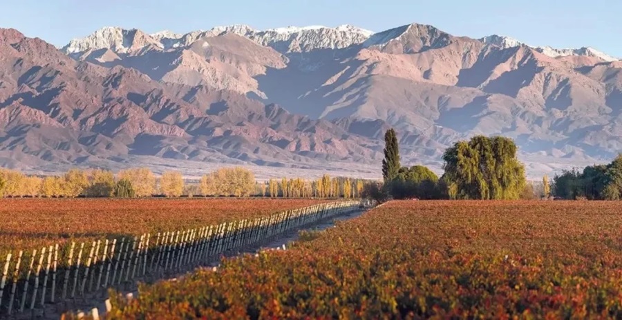 Mendoza es, sin duda, la capital del vino en Argentina y una de las regiones más prestigiosas del mundo. Ubicada a los pies de los Andes, sus viñedos se extienden bajo la imponente silueta de las montañas. Aquí, la variedad estrella es el Malbec, famoso por su intensidad y notas afrutadas.